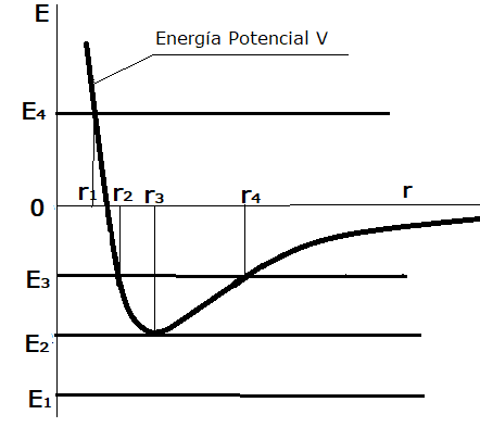El valor de la energía total E no puede estar nunca por debajo del valor mínimo de la curva, como E1, pues en ese caso la energía cinética Ec sería negativa y eso es imposible.