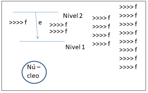 Pensemos en un electrón que está orbitando alrededor del núcleo dentro de un átomo, y lo hace con un determinado nivel de energía. Entonces puede ocurrir que el electrón pierda parte de su energía emitiendo un fotón y salte a otra órbita con un nivel energético inferior quedándose dentro del mismo átomo, lo que sucede si la energía que se lleva el fotón, que depende de su frecuencia, es igual a la diferencia de energías de las dos órbitas entre las que se puede mover el electrón. De forma inversa, el electrón puede recibir energía y saltar a un nivel energético superior. Hasta aquí todo normal.