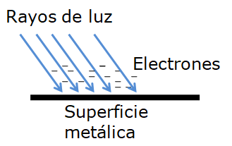 Aunque el carácter ondulatorio de la luz explicaba con solvencia muchos fenómenos, algo no iba del todo bien cuando se hacían ciertos experimentos, en los que la luz parecía tener también un carácter corpuscular, carácter que se pone de manifiesto con el llamado efecto fotoeléctrico. Henrich Herz ya habló de este efecto en 1887 y Einstein lo explicó en 1905. La figura 5 trata de ilustrarlo presentando cómo al incidir un rayo de luz sobre una superficie metálica pueden liberarse electrones que salen de ella hacia el exterior. Si se aumenta la intensidad del rayo de luz, salen de la superficie más electrones, pero todos ellos con la misma energía que antes. En cambio si se aumenta la frecuencia del rayo de luz los electrones salen con mayor energía, siendo esta energía proporcional a la frecuencia. Conclusión: el rayo de luz está compuesto por partículas sin masa llamadas fotones cuya energía es proporcional a la frecuencia. Haciendo las medidas adecuadas se calcula que la constante de proporcionalidad es la constante de Planck. Esto explica que al aumentar la frecuencia, aumente la energía de los fotones que inciden sobre la superficie y en consecuencia que los electrones liberados salgan de ella con una energía mayor. El carácter corpuscular de la luz se pone de manifiesto de forma muy intuitiva cuando se hace incidir sobre un detector de fotones un rayo de luz de intensidad muy pequeña, pues en este caso los chasquidos (clic, clic, clic) del detector nos cantan como van llegando a él los fotones de uno en uno.