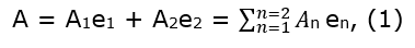 –Un vector A en un espacio vectorial normal de dos dimensiones, de componentes A1, y A2, referidas a una base e1, y e2, viene dado por: